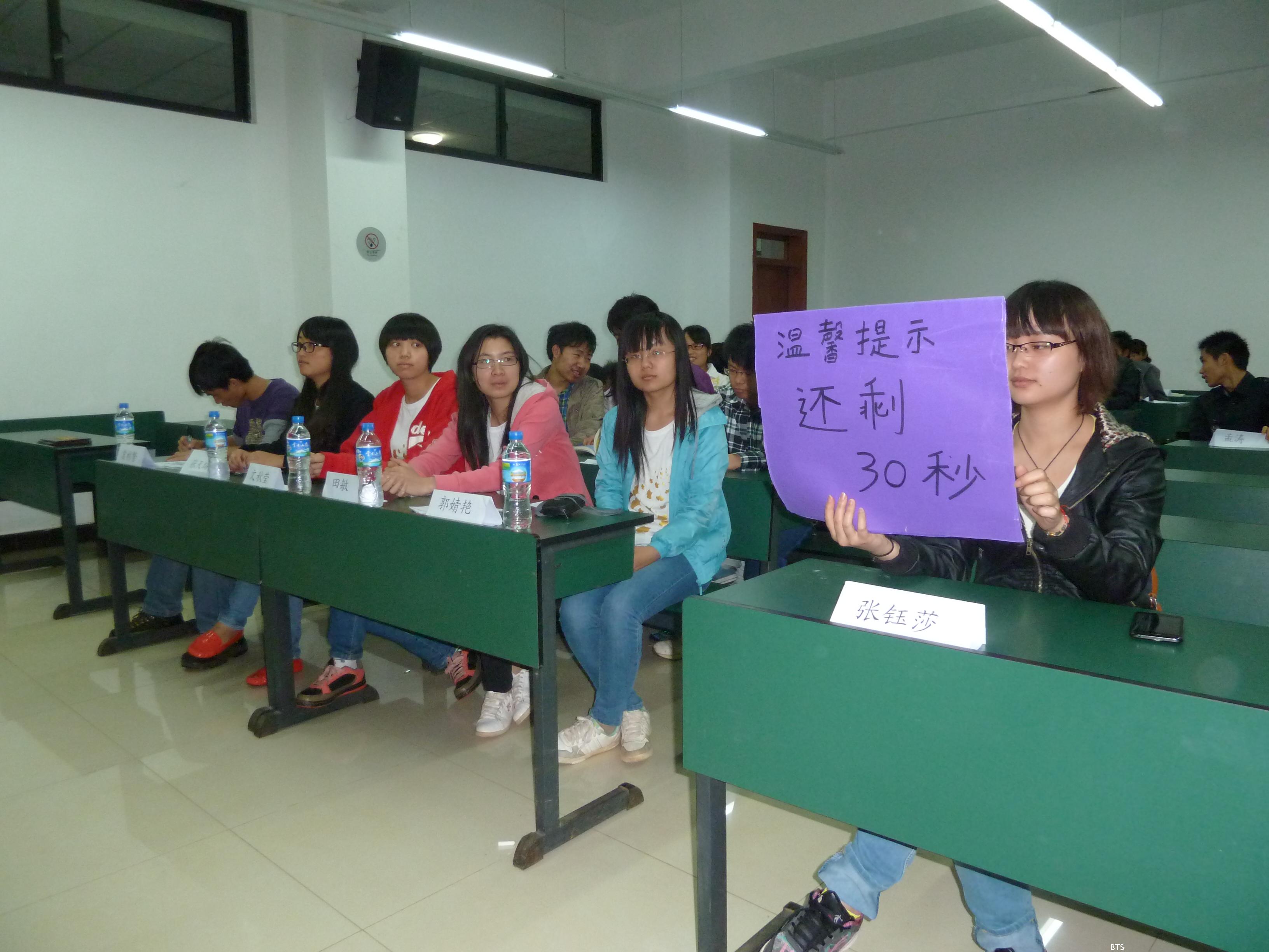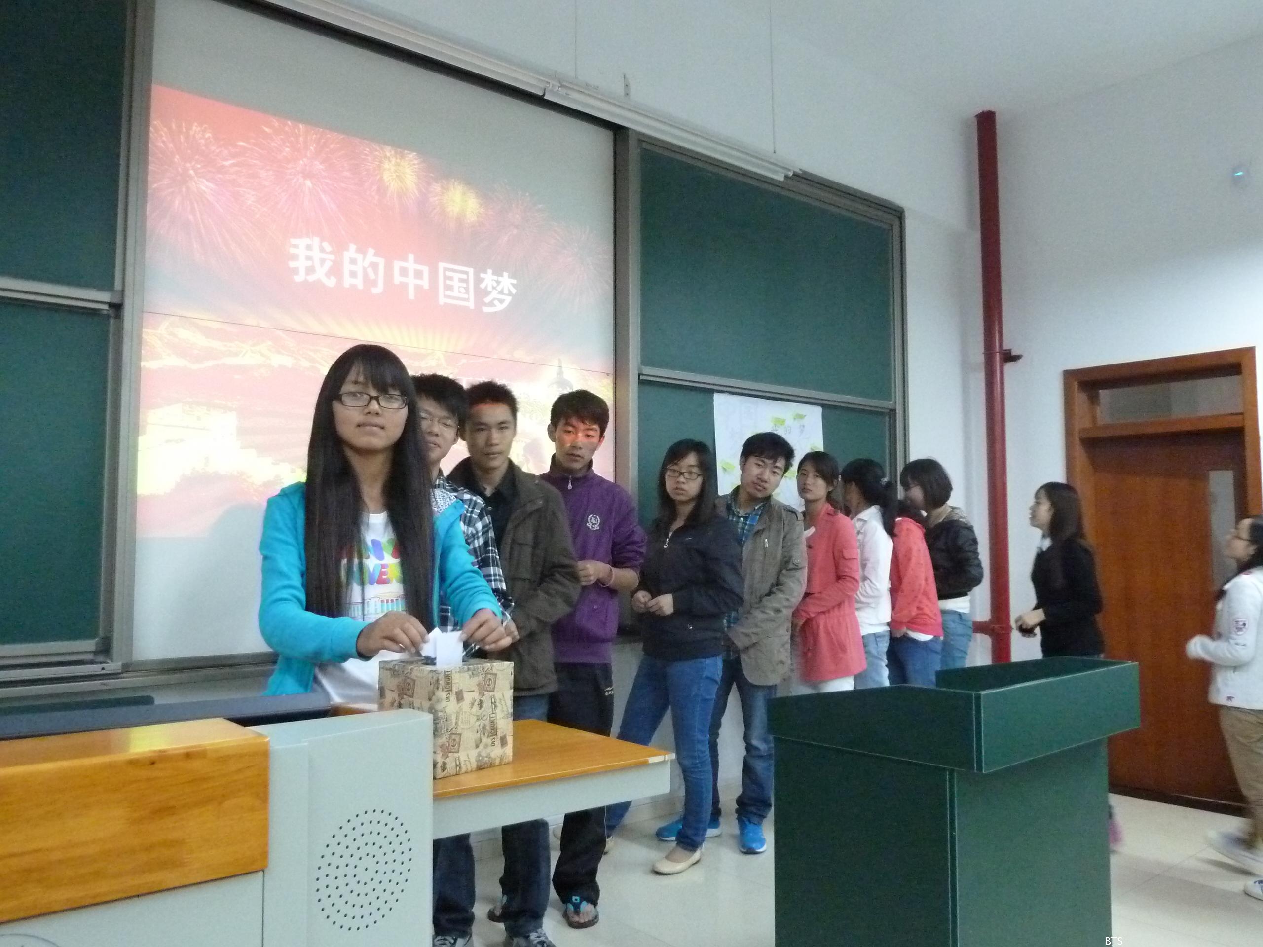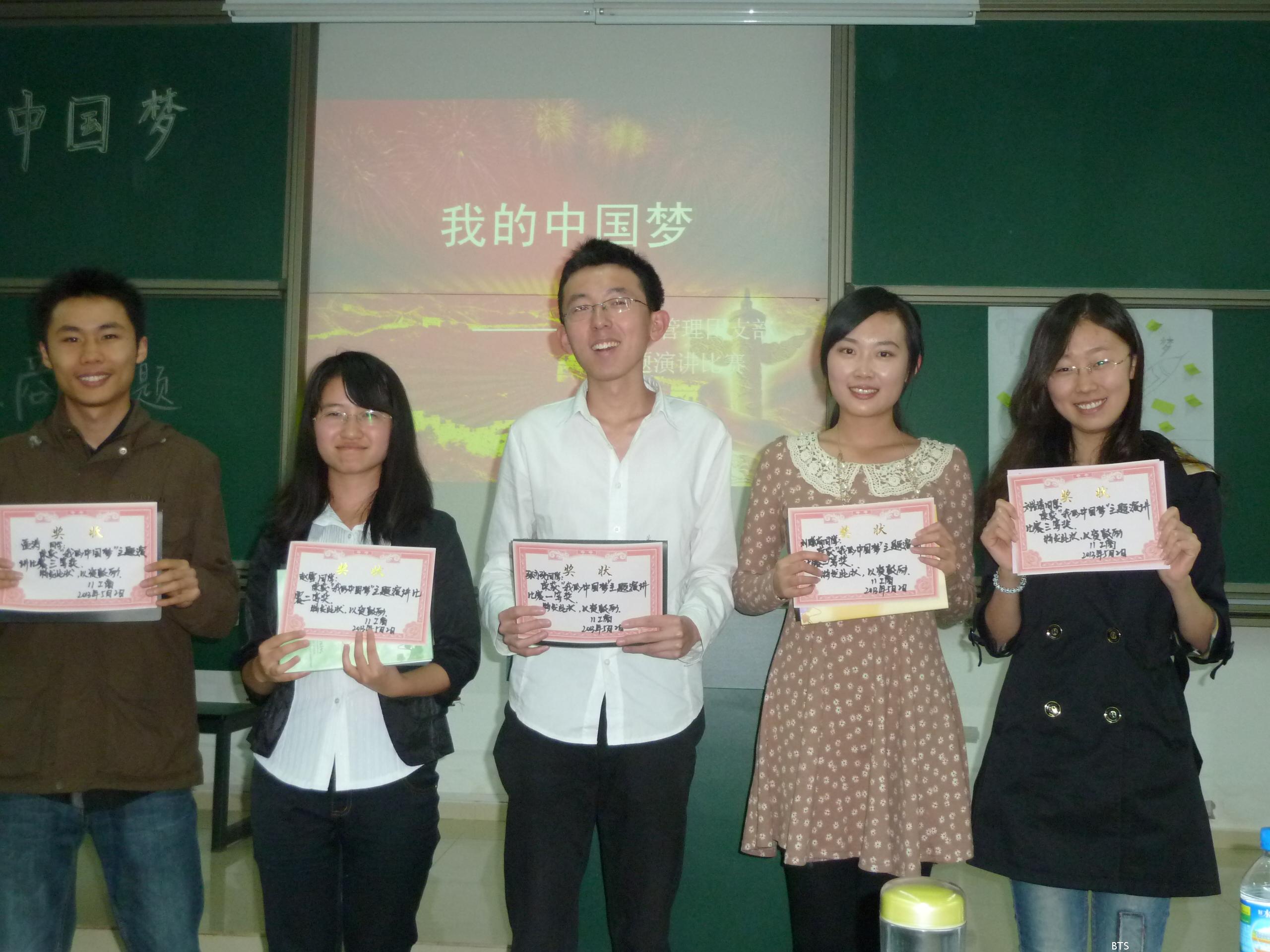 2013年5月2日星期四晚7点,为贯彻中国特色社会主义主题教育活动,商旅公司11工商团支部开展“我的中国梦”演讲比赛。出席本次比赛的有5名参赛选手,11工商全体同学作为评委。