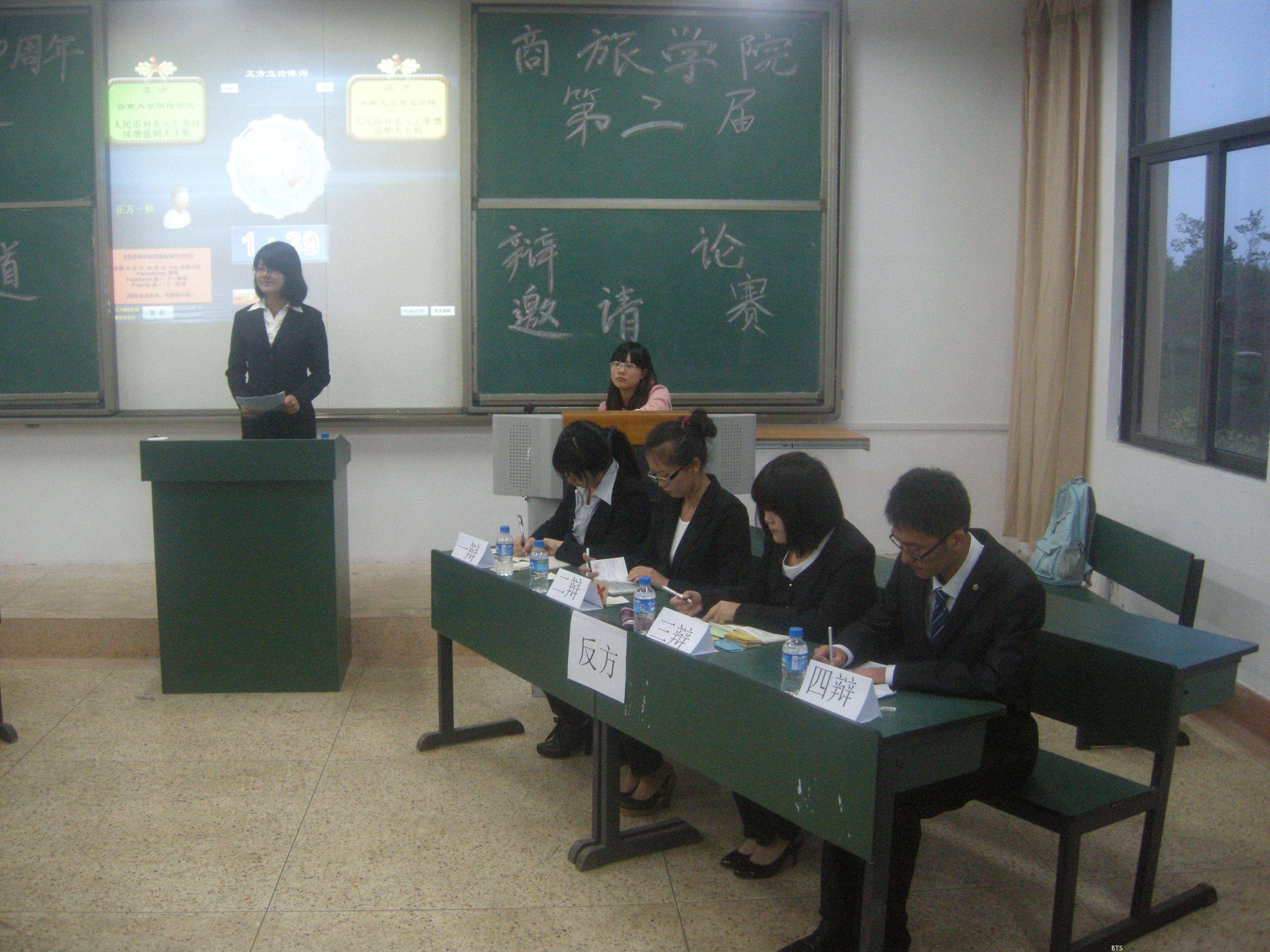 2013531900,商旅公司校庆献礼活动之“高校商道辩论邀请赛”开始了,参赛队伍经济公司VS民大管理公司,国际公司VS商旅公司二队,师大经管公司VS公管公司,精彩辩论就在文汇楼上演。