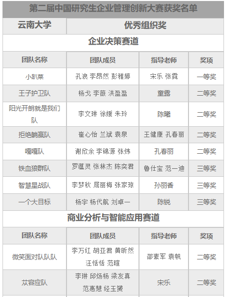 本届中国研究生企业管理创新大赛获奖名单如下: